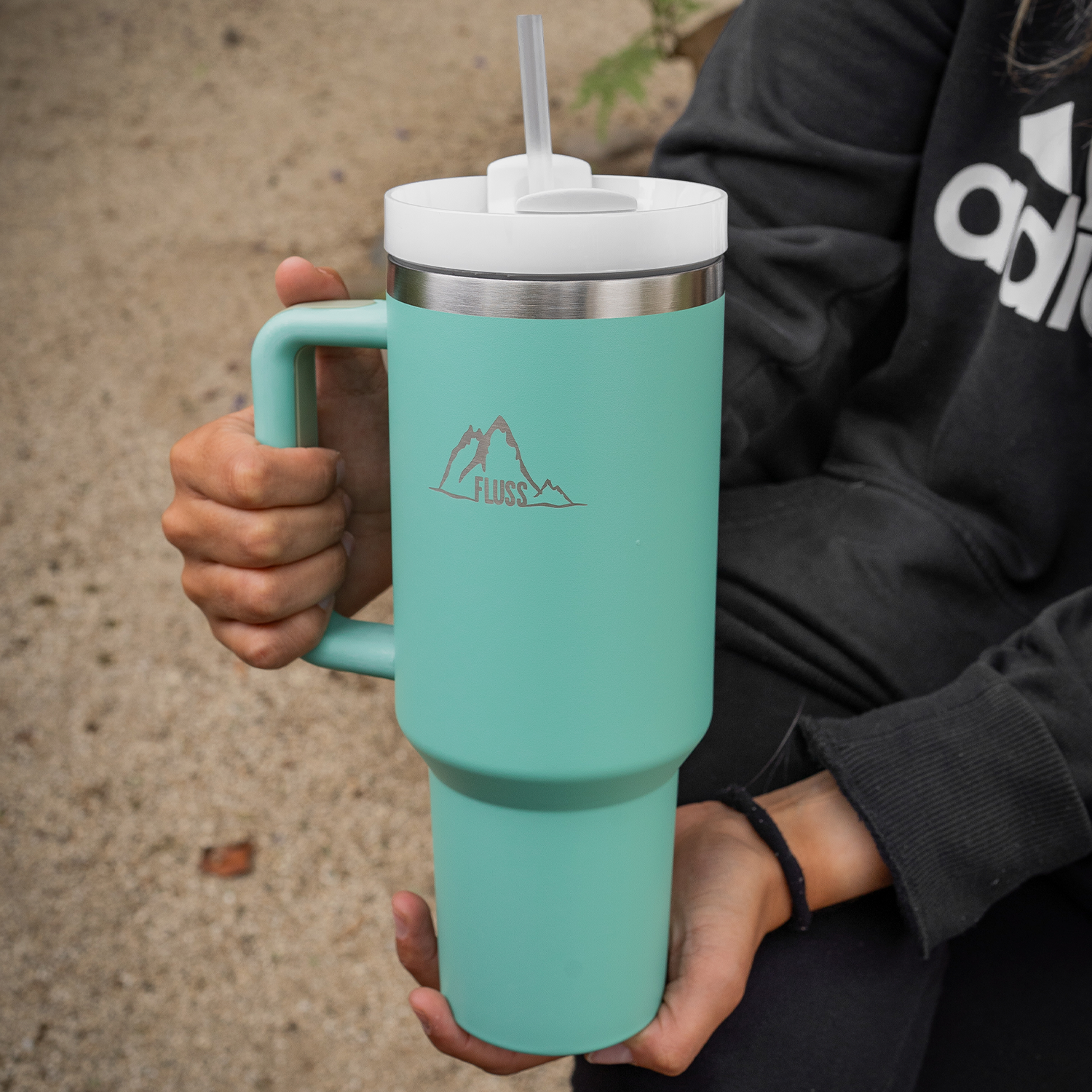 Tumbler con tapa y bombilla. Es grande para que puedas tomar tu líquido favorito todo el día donde quieras! Es muy cómodo de transportar por su mango y cabe en el porta vasos del auto. Toma agua con estilo!!!
